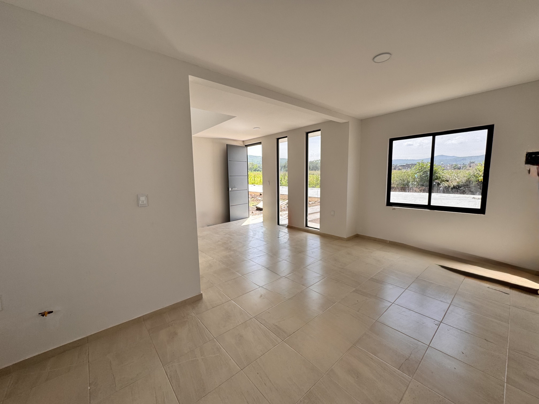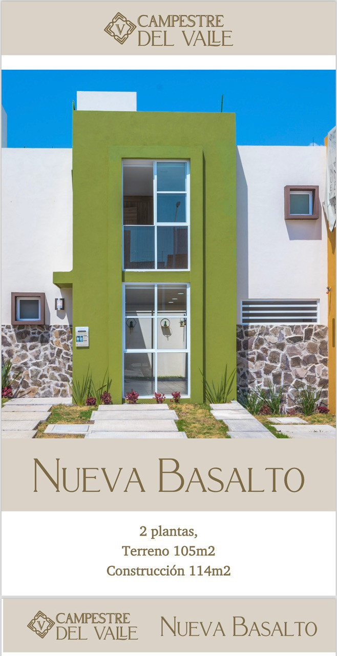 Planta baja: Cochera al exterior para 2 autos, sala, cocina, comedor, patio de servicio, baño para visitas, 1 recámara en planta baja con baño completo.