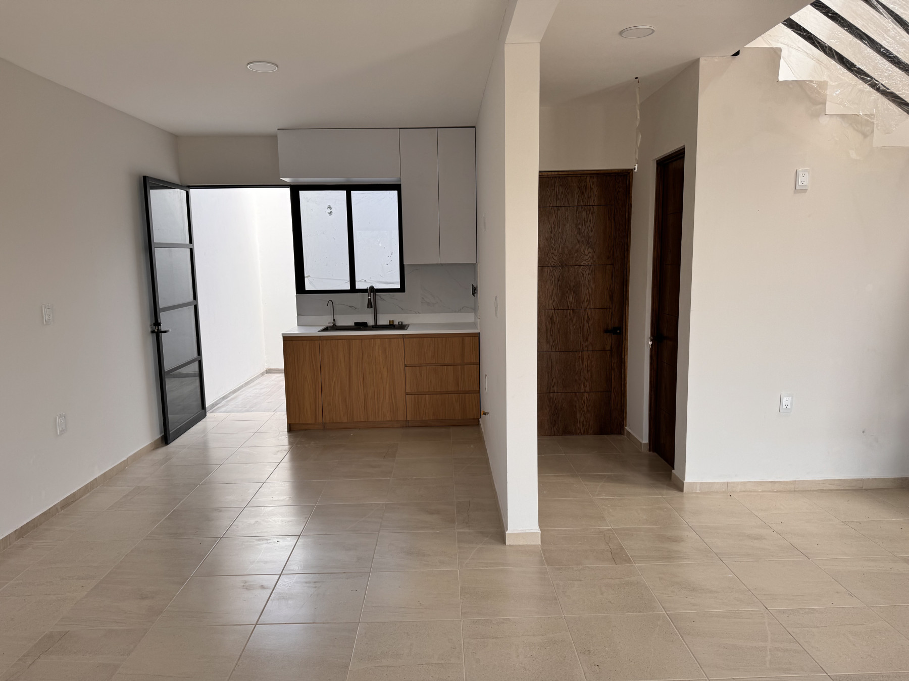 Planta baja: Cochera al exterior para 2 autos, sala, cocina, comedor, patio de servicio, baño para visitas, 1 recámara en planta baja con baño completo.